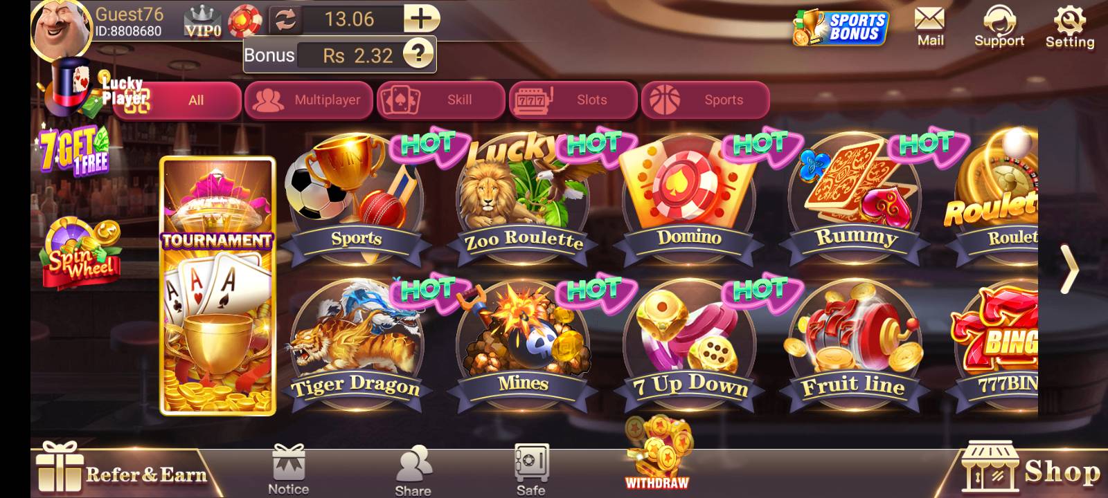 Multiple Game Modes: You can enjoy different kinds of games such as slots, card games like Teen Patti, and real-time challenges against other players.